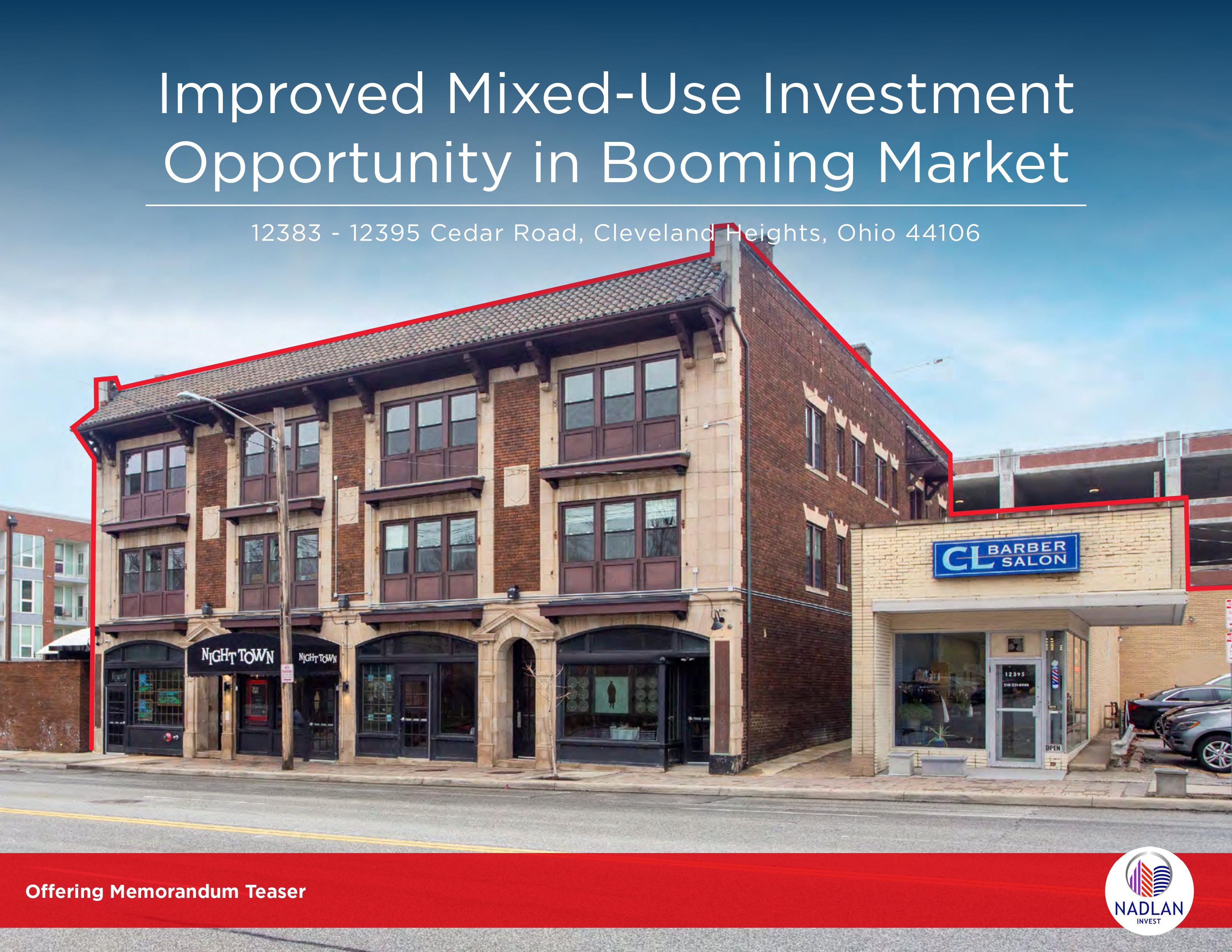 The investment opportunity at 12383-12395 Cedar Road in Cleveland Heights, Ohio, offers a robust, mixed-use property that has undergone significant renovation and holds substantial financial promise. The portfolio includes two adjacent buildings, with the first previously occupied by Nighttown restaurant and now leased to Red Steakhouse under a stable 10-year contract. This ensures a consistent cash flow from a well-established tenant in the upscale dining market. The second building includes 16 luxury one-bedroom apartments, each fully remodeled to meet modern living standards. These units are designed with efficient layouts, stone countertops, high-end bathroom fixtures, mini-split HVAC systems for optimal energy efficiency, and new plumbing and mechanical systems. These enhancements make the apartments highly attractive for prospective tenants, with leasing already in progress. This newly updated residential offering is expected to drive high occupancy rates and rental income. The property benefits from its location in the Cedar Fairmount neighborhood, a vibrant area known for its mix of residential, retail, and cultural offerings. Cedar Fairmount is not only a commercial hub but also a cultural gateway to Cleveland's major attractions, such as the Cleveland Museum of Art and Severance Hall, positioning it as an appealing neighborhood for both residents and businesses. The neighborhood sees a daily traffic volume of 19,847 vehicles, adding to the attractiveness of the retail spaces for tenants. Additionally, the neighboring property offers partially leased retail spaces, with ongoing interest in the remaining units, providing potential for either new leasing activity or complete redevelopment. The entire site, sitting on 0.298 acres of land, can be reimagined or further optimized depending on the investor's vision, allowing flexibility for value-add strategies. Financially, the property delivers strong metrics, with a Net Operating Income (NOI) of $401,581 projected for 2023. This income, derived from the restaurant lease and potential rental income from the fully remodeled apartments, makes this an appealing prospect for investors seeking stable, long-term returns. Furthermore, the Cleveland Heights area is experiencing growth, with an improving office market, rising rental rates, and increased leasing activity, particularly in nearby commercial spaces. This positions the investment for future appreciation as market conditions continue to strengthen. In summary, the 12383-12395 Cedar Road property combines modernized residential units, a prime retail tenant, and significant upside potential in a high-traffic, culturally rich neighborhood, making it an excellent mixed-use investment in a thriving Cleveland market.